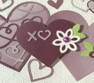 I used the Many Hearts dies for this card. This is a great neat for the die set because it has 15 pieces and cuts out a row of hearts, lots of hearts in different sizes, a few flowers, and xoxoxox.